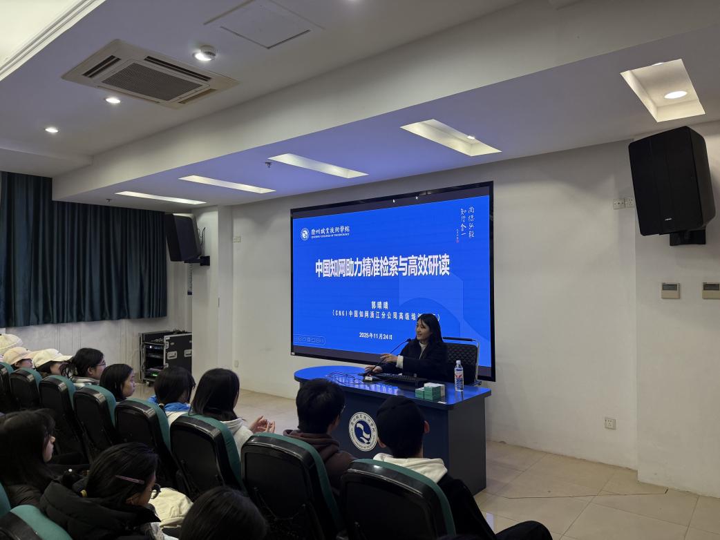 为帮助师生更好地运用数字资源挖掘专业文献价值,11月24日下午,图书馆在三号报告厅成功举办“中国知网助力精准检索与高效研读”专题讲座。本次讲座特邀CNKI中国知网浙江分公司高级培训讲师郭睛睛主讲,全校近150名师生读者到场聆听,现场学习氛围浓厚。