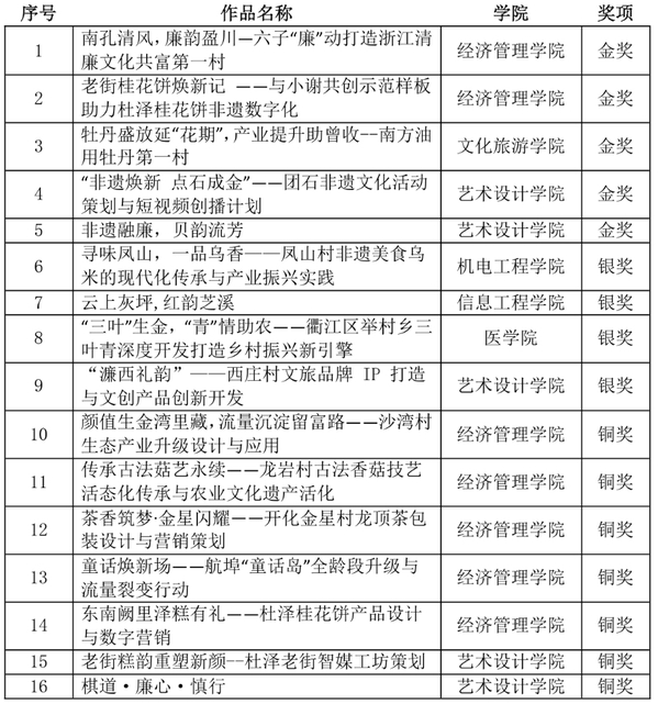 作为赛事组织与指导的服务部门,创业学院充分发挥创新创业教育枢纽作用:一方面,依托“乡村振兴+双创”特色课程体系,提前开展项目孵化、导师结对等专项培训,引导师生聚焦衢州本土乡村资源,将专业技能与乡村需求精准对接;另一方面,搭建“校地企”协同平台,推动参赛项目与乡村产业、非遗资源、文旅项目深度联动,让作品既具创意性,更具落地实用性。从项目选题到方案打磨,创业学院全程跟进指导,为本次赛事的突破提供了有力支撑。